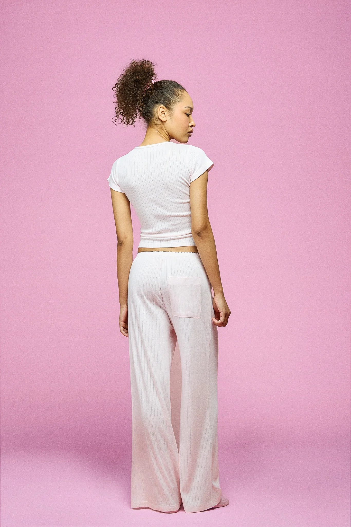 Dreamy, buttery-soft and impossible not to fall for, these full-length, wide-leg sleep pants are crafted from our signature Pointelle Knit for a feel thatās equal parts romantic and effortless. Finished with a contrast bow and a scalloped waistband for the sweetest touch.